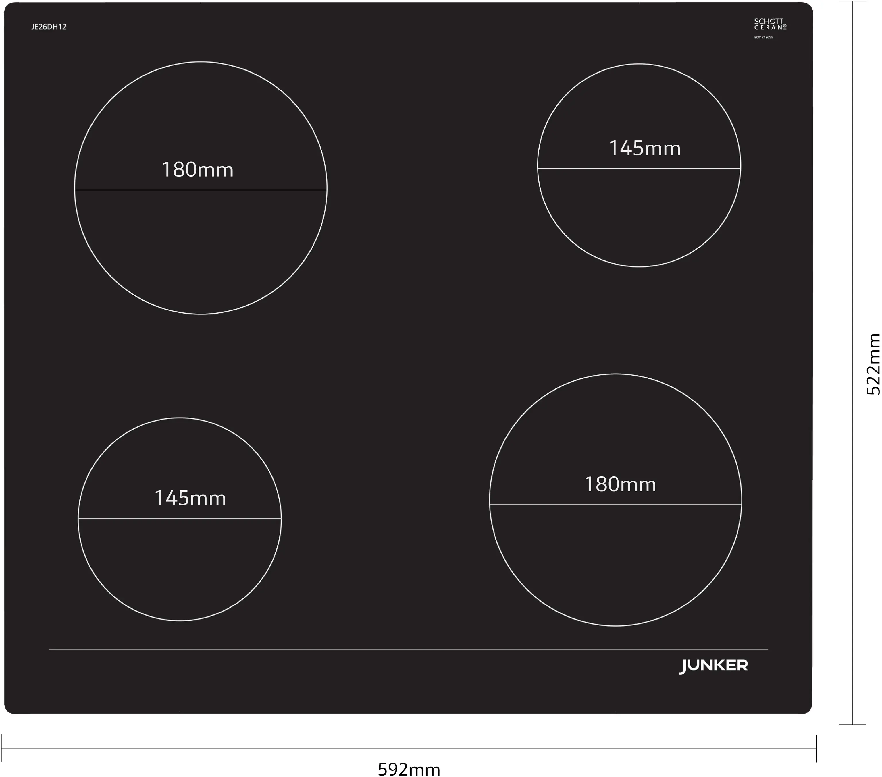 Elektro-Kochfeld 60 cm herdgesteuert, Rahmenlos aufliegendJE26DH14